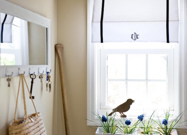 . Sometimes it is the simple touches that are most effective. These net embroidered black initials on the edge of a plain white fabric blind turn into a treatment smart and eye-catching window, suitable for any room in the house.