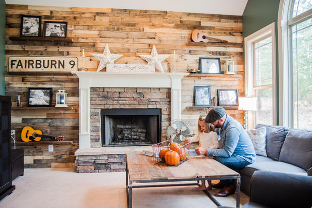 In a smaller space , try cutting a pallet in two, and stacking the sections to create a neat side table. Here they were painted white to match the contemporary space.